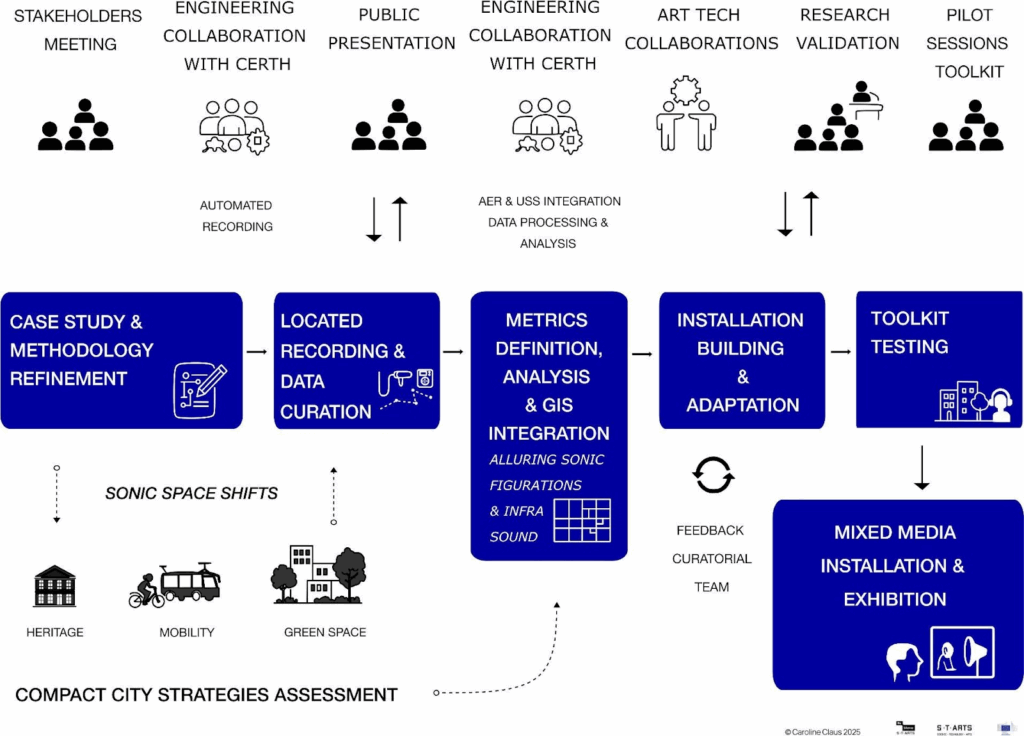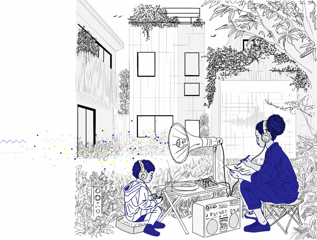 CDA as sonic geographic score combines urban-planning criteria with improvised and passive logging, situated listening, producing AI-based sonic cartography and the concept of Sonic Space Shifts as liveability markers. Dubplate listening and Riso prints foster dialogue between residents, designers and planners.