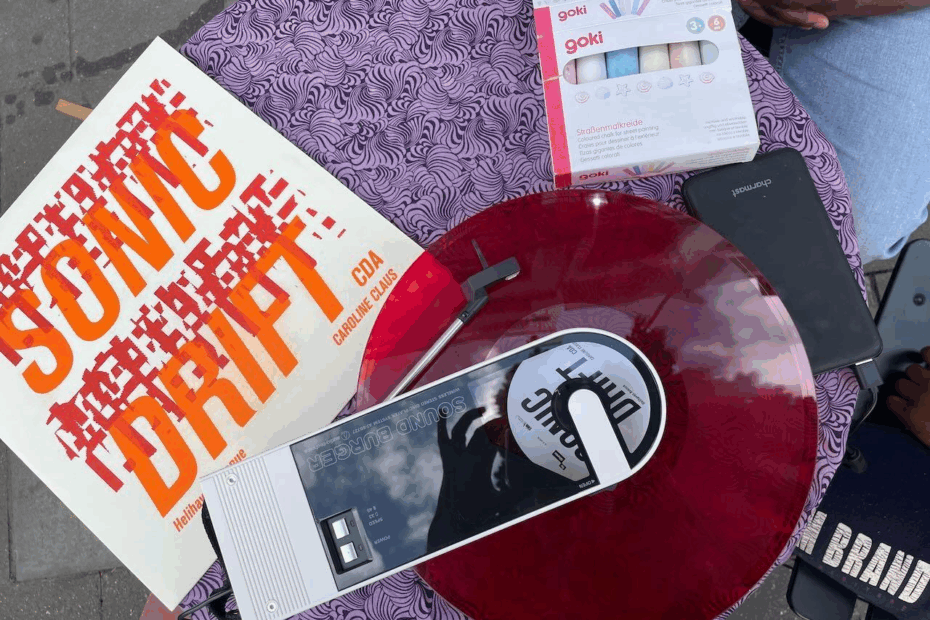CDA as sonic geographic score combines urban-planning criteria with improvised and passive logging, situated listening, producing AI-based sonic cartography and the concept of Sonic Space Shifts as liveability markers. Dubplate listening and Riso prints foster dialogue between residents, designers and planners.