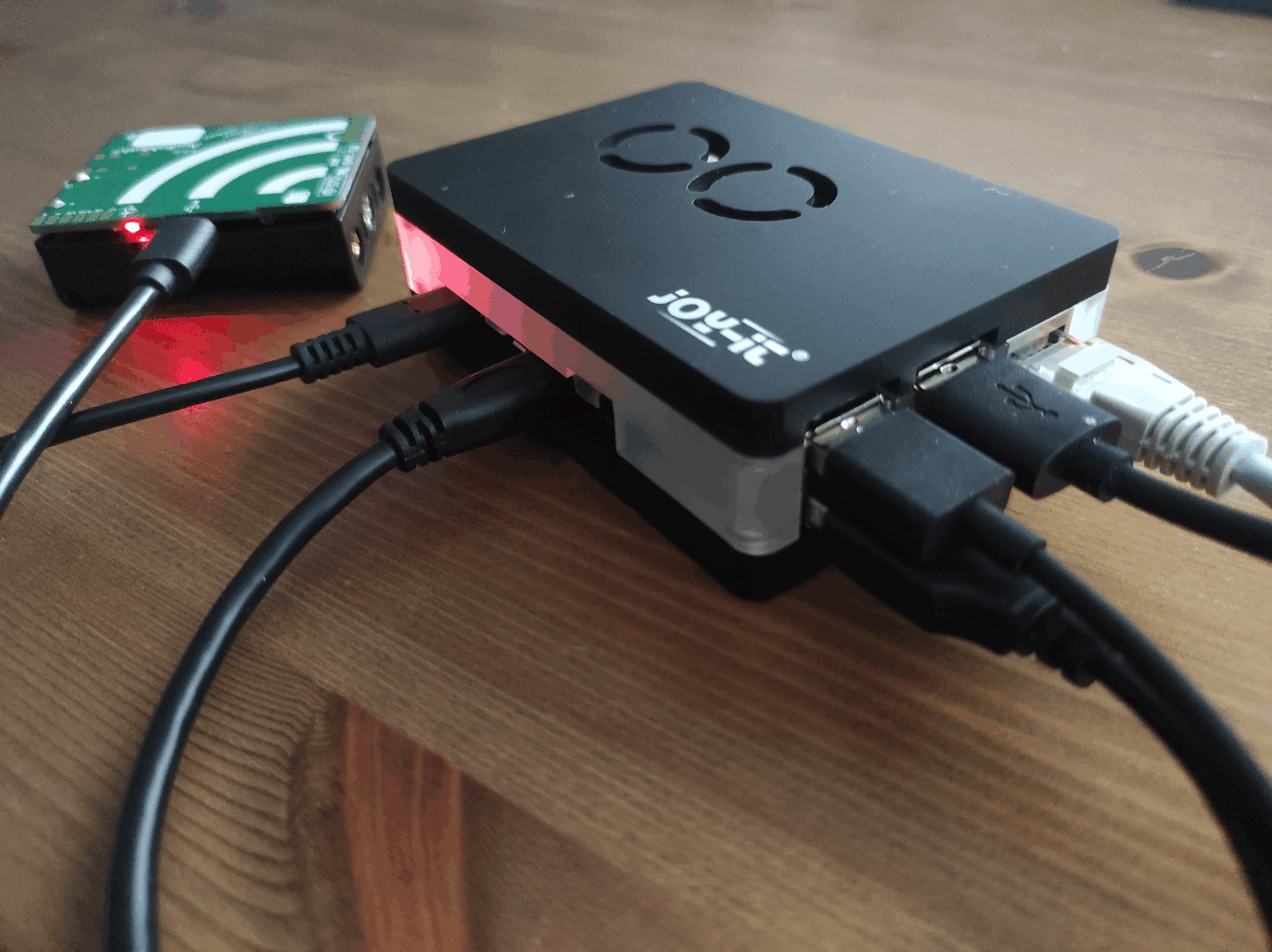 Hardware equipment: Raspberry Pi 4Β+ Audiomoth as a microphone + powerbank for portability