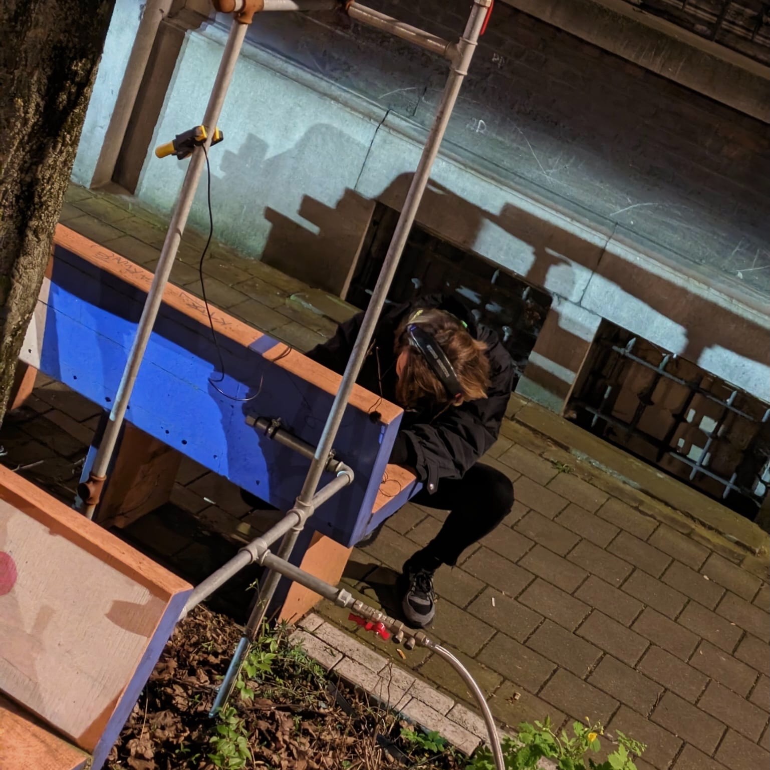– Passive (rooftops) and Active (street-level walks) using contact, shotgun, and omnidirectional microphones, and a high-quality recorder. (IP split: field method & Score by Artist; passive data logging and monitoring device network system by CERTH)