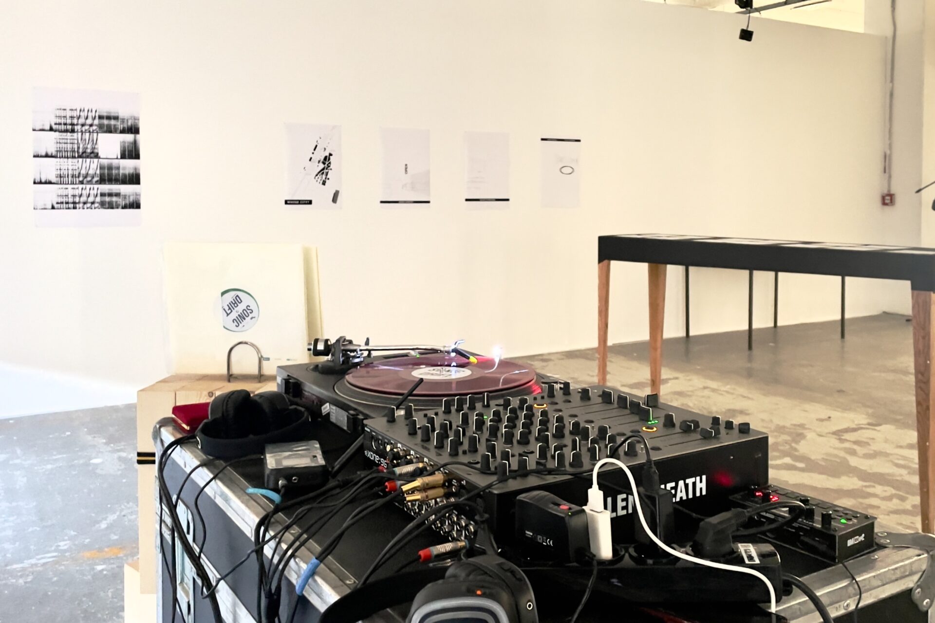 Dubplate Listening Deck: Three hand-cut dubplates (one per pilot site) presented on a modular headphone setup, allowing cueing, looping, and reversal to emphasize temporal and affective textures. (cuts by Dubplate – Lester Michiels)