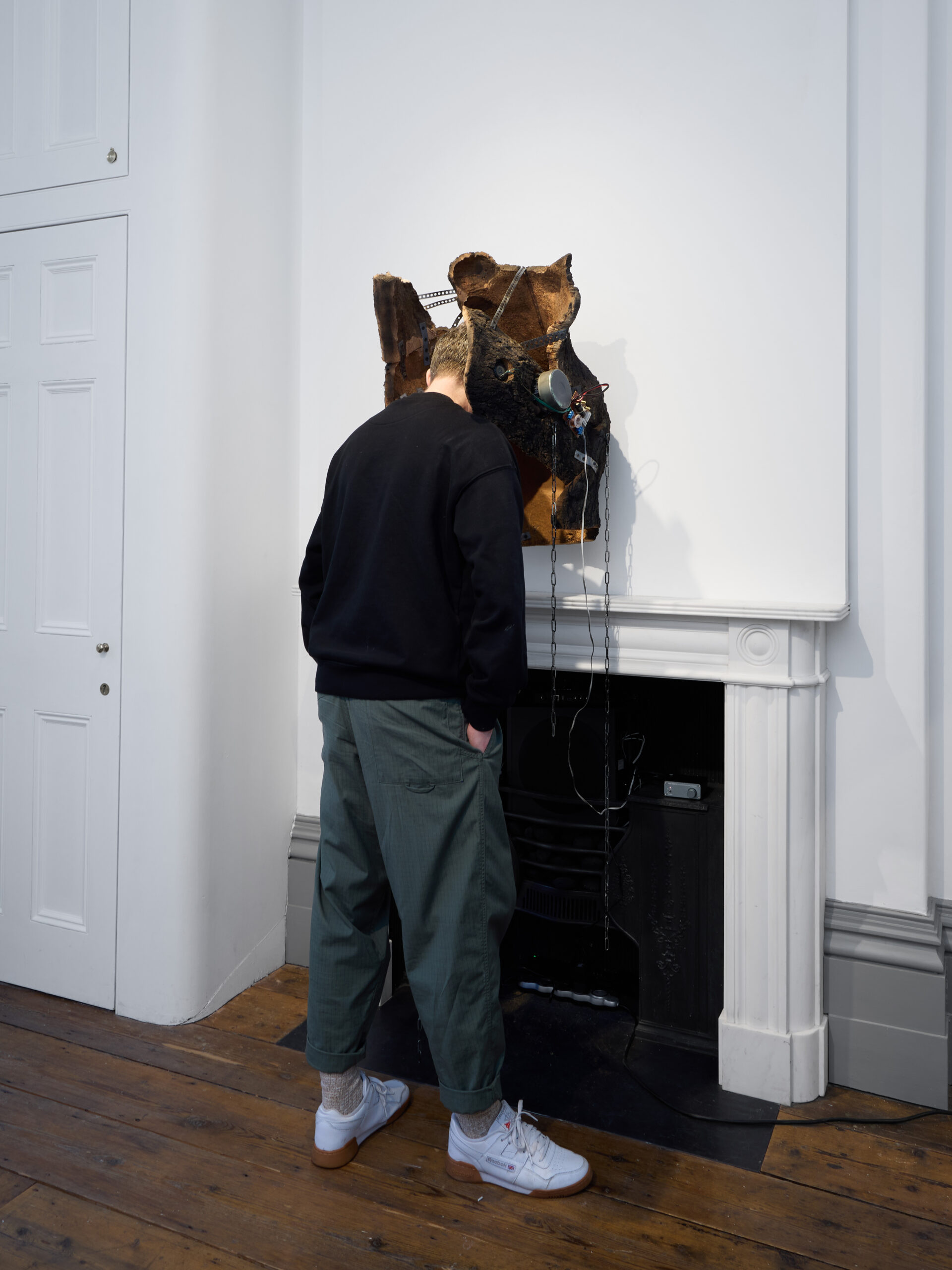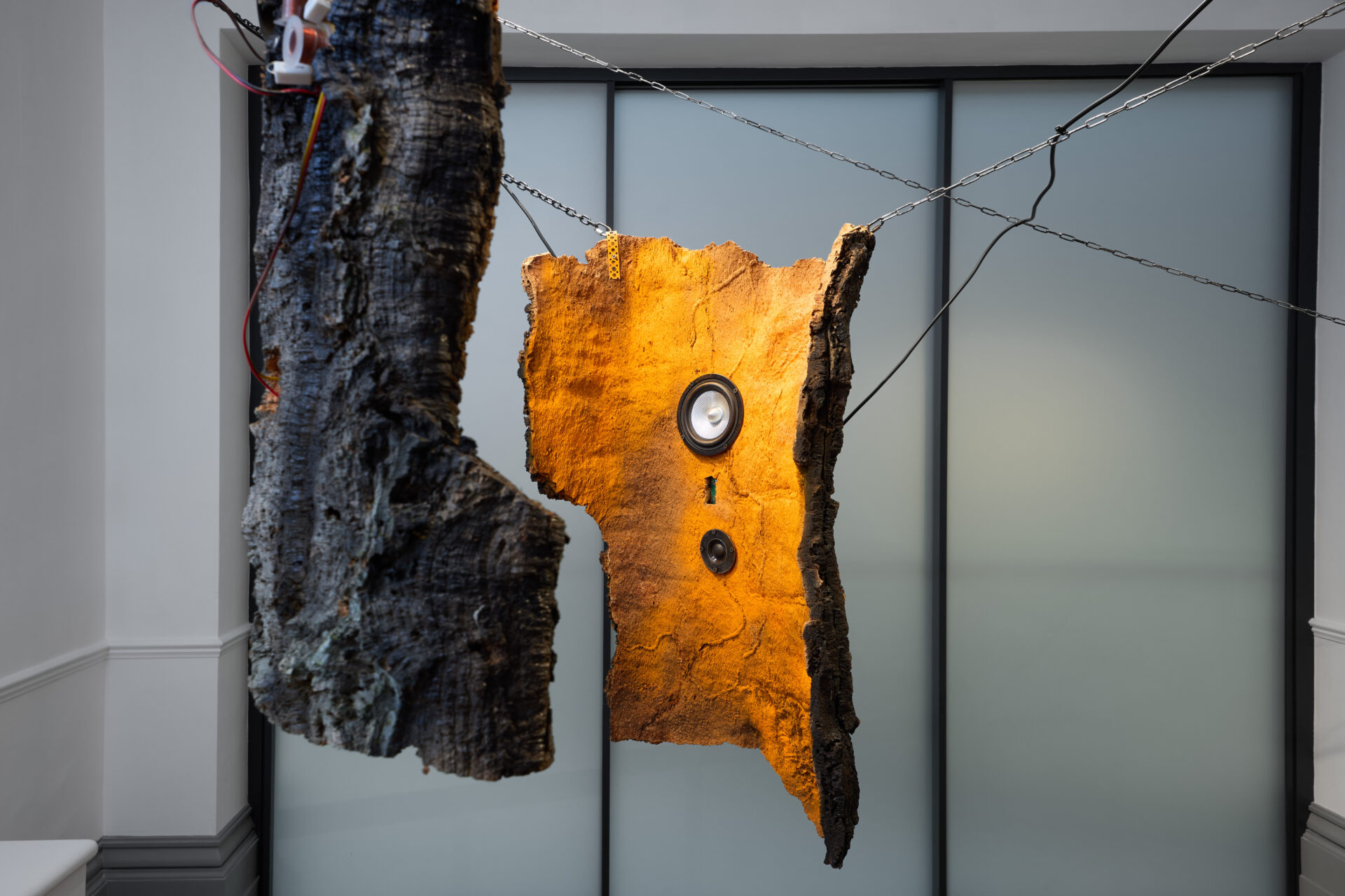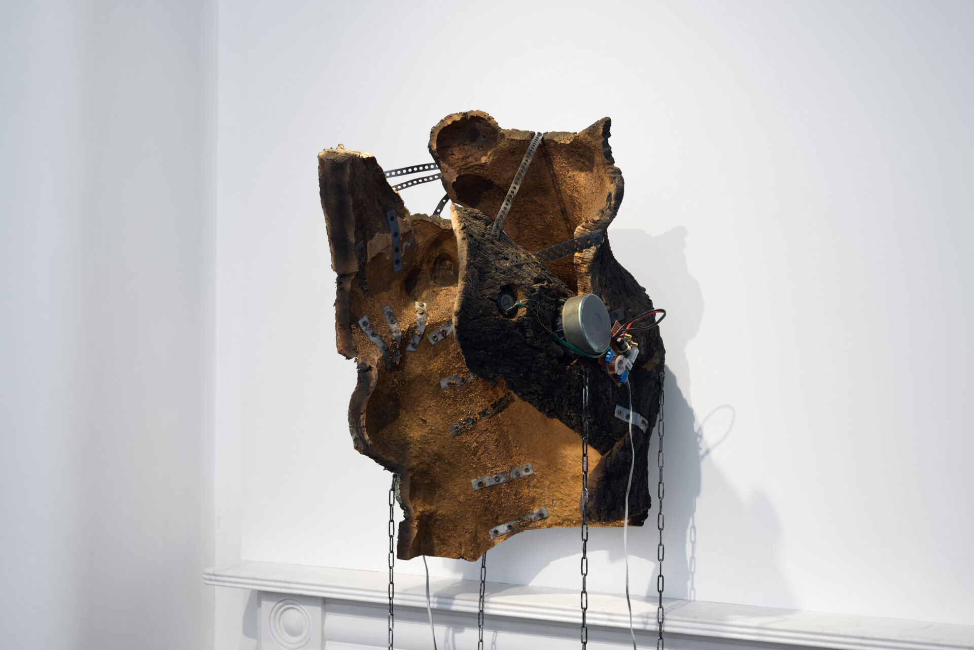 Each part is composed from a variety of materials: cork, representing the organic shell of the body; a range of different speakers, inserted in various ways into cork or plexiglass; sound recordings, produced by the artist and his partners during Tottenham Hotspur matches, and abstracted to varying degrees. The project was first shown at OOF Gallery, which is located inside of the Tottenham Hotspur Stadium vicinity. It engages with the urban dimension of sound, as it reflects on stadiums and athletic mega-events as an essential part of the sonic landscape of the city, functioning (as it has throughout much of history) as an emotional outlet for the densely populated social fabric. The project includes a digital component, which is currently in development with CERTH – a digital archive of the recorded sounds, organized into different categories (e.g. single voice, multiple voices, architectural sounds, etc), which will be made freely available on the artist’s website.