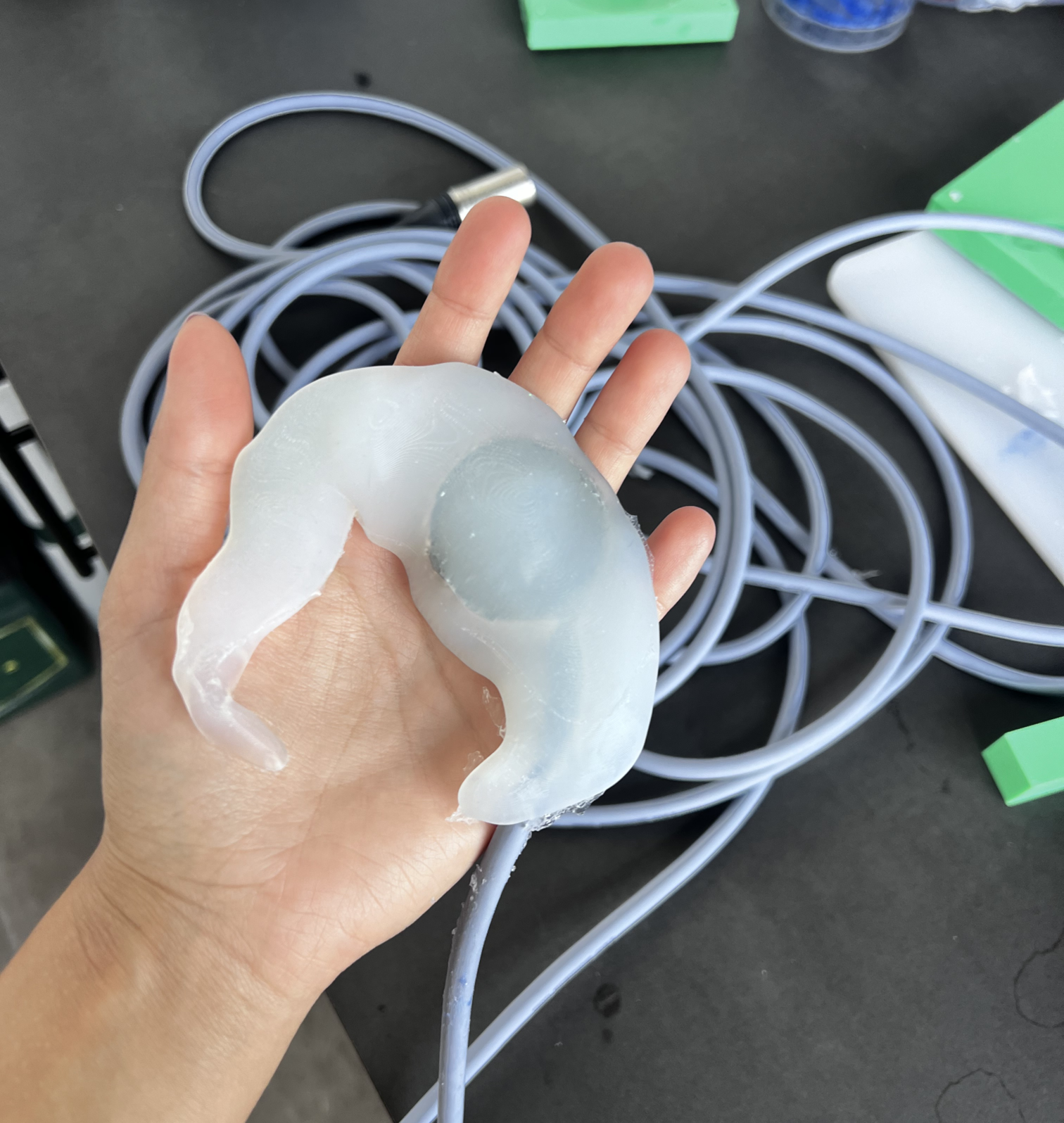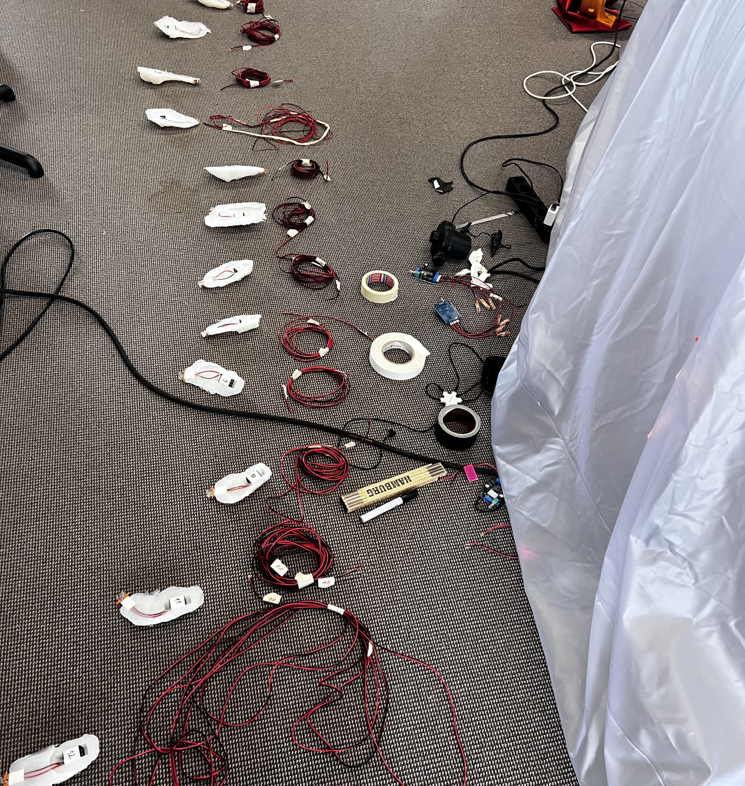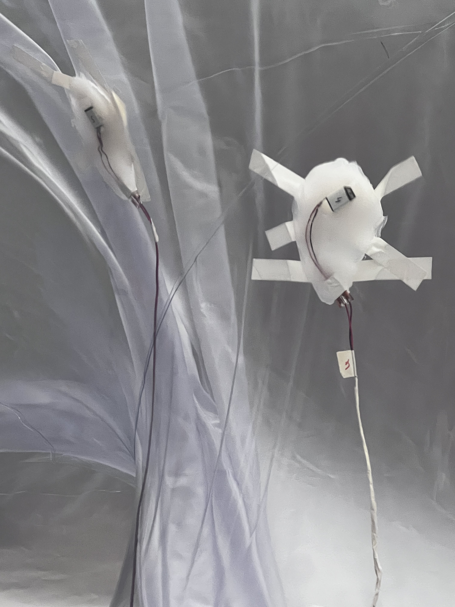 The methodological approach combined device-making and speculative frameworks to explore how bodily and urban soundscapes might be brought into dialogue. Central to this practice was the development of hydrophone-based sensing systems embedded within soft, inflatable architectures. These inflatables acted as resonant chambers, designed to capture and amplify internal bodily sounds such as peristaltic movements and vibration. By employing hydrophones—transducers capable of detecting vibrations typically inaudible to the human ear—the system translated intimate, visceral processes into audible signals